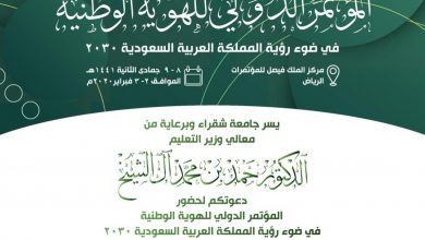 وزير التعليم يفتتح مؤتمر الهوية الوطنية يوم الأحد . تنظمه جامعة شقراء (8) جلسات و(35) من المتحدثين والنخب الوطنية .…
