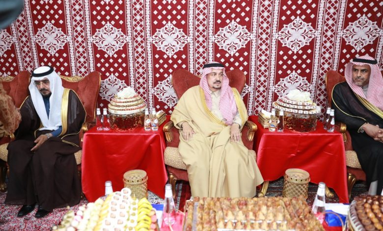 عقب ذلك توجه سمو الأمير فيصل بن بندر إلى احتفال الأهالي وتناول سموه طعام العشاء المعد بهذه المناسبة .