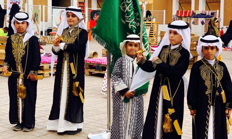 وقدكان في استقباله أطفالاً تزينوا باللباس التراثي السعودي الأصيل وصدح المكان بصوت القصيد ترحيباً بزيارة سموه وكان من تقديم الطالبة/ايلاف البقمي