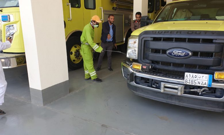 دفاع شقراء يطهر مبانيه وآلياته بالتعاون مع بلديات المحافظة ( شقراء-أشيقر – القصب )