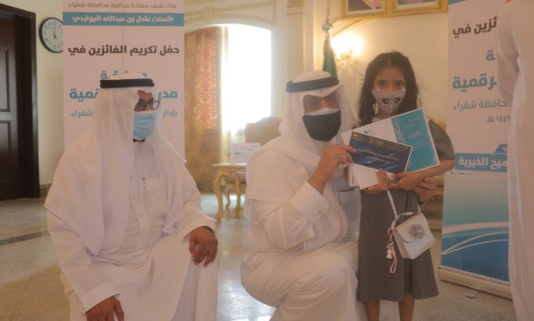 رعى سعادة محافظ شقراء الأستاذ / عادل بن عبد الله البواردي حفل توزيع جائزة مدرستي الرقمية بتعليم شقراء، بحضور مدير التعليم بشقراء د. خالد بن محمد الشبانة و المساعد للشؤون المدرسية د. عادل بن منير الزايدي .