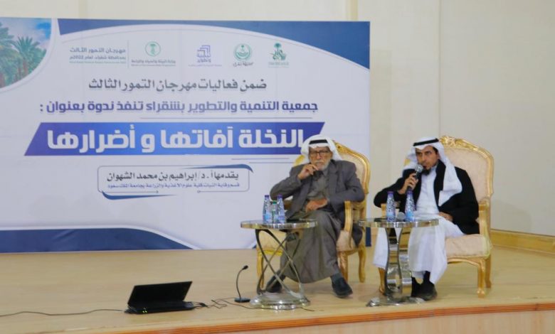 ضمن فعاليات #مهرجان_تمور_شقراء_الثالث قدم أ .د / ابراهيم بن محمد الشهوان عضو هيئة التدريس بقسم وقاية النبات بكلية علوم الاغذية والزراعة بجامعة الملك سعود