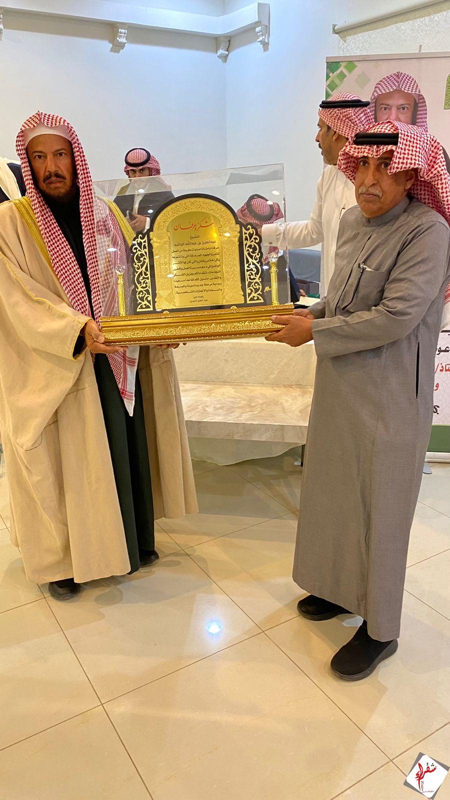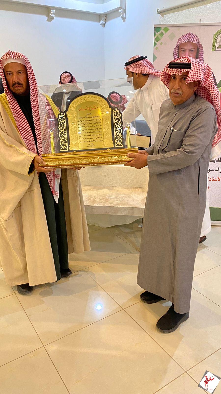 منسوبو ومنسوبات إدارة المساجد والدعوة والإرشاد بمحافظة شقراء، يقيمون حفل وداع وتكريم لمدير الإدارة السابق الأستاذ/ عبدالعزيز بن عبدالله الراشد، ولعدد من موظفي الإدارة المتقاعدين،
